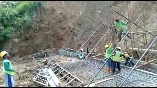 Proses pembuatan dinding penahan tanah.